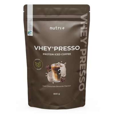 Der leckere Protein Iced Coffee von Nutri+ ist der ideale proteinreiche Start in den Tag oder der perfekte Begleiter für einen schnellen Energie-Kick zwischendurch. Dieser hochwertige Protein-Kaffee mit super leckerem Schokoladen-Brownie Geschmack liefert nicht nur wertvolles Eiweiß, sondern ist auch vegan und laktosefrei. Dank seiner cremigen Konsistenz und dem köstlichen Geschmack ist Vegpresso die optimale Lösung für alle, die Wert auf eine gesunde und proteinreiche Ernährung legen. Genieße den unvergleichlichen Geschmack von Schokolade in Deinem Kaffee und starte energiegeladen in den Tag.